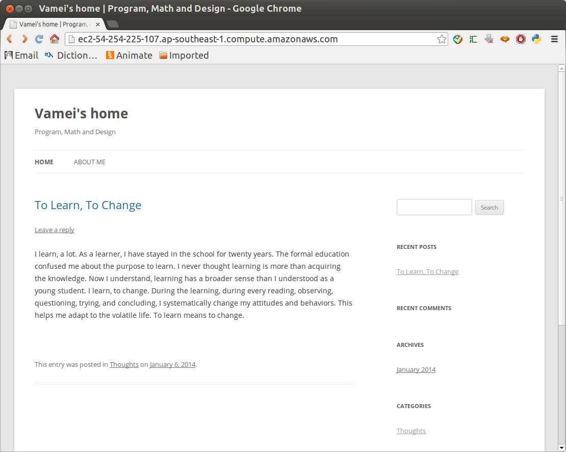 这一修改可能需要一些时间才能生效。生效后,可以通过vamei.me访问我的博客了。