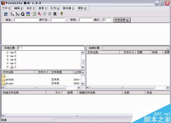 FTP实际上就是一个上传文件的工具,负责将你的代码和你的文件等上传到服务器空间。你可以选择使用FlashFXP或者chinaftp等等ftp软件,在百度搜索:ftp上传工具。就能找到,FTP工具很多,找到之后下载并安装打开,就进入了ftp工具了: