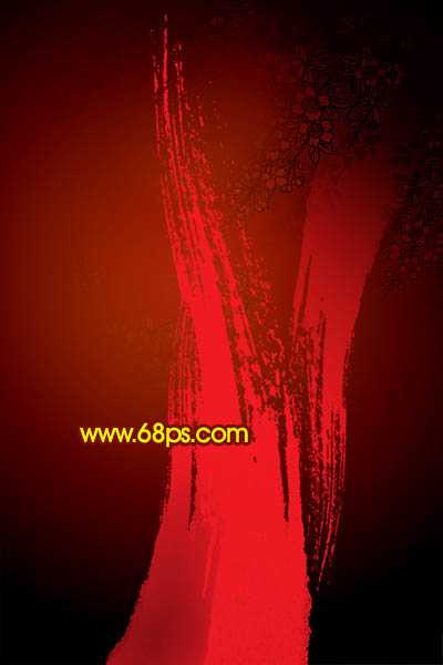 <图5> 3、打开下图所示的水墨笔画素材,用魔术棒抠出来,填充红色。拖进来适当调整好位置和大小。再多复制几层适当调整颜色和大小,如图7。
