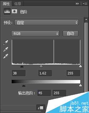 10-2、还是复制一层文字层,放到最上面,把图层样式去掉,然后添加一个色阶调整层(只对该层作用的调整层),设置如下: