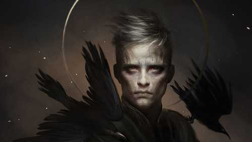 绘画的第一件事情是快速找到设计概念和整体构图。笔者构想的画面是一个魔幻风格的男角色,表情冷漠,一群乌鸦围绕着他。构思确定后,笔者开始用粗糙的铅笔线条和散乱的颜色,大致勾勒完成人物概念设计。笔者认为在开始上色前需要做好整体的色彩方案,并且设计主光源来自于场景上方。
