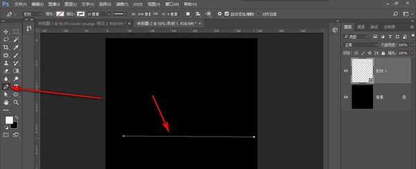 3、这是因为我们当时的图层是矢量图层,所以不行,新建图层之后,使用钢笔工具绘制出一条路径线。