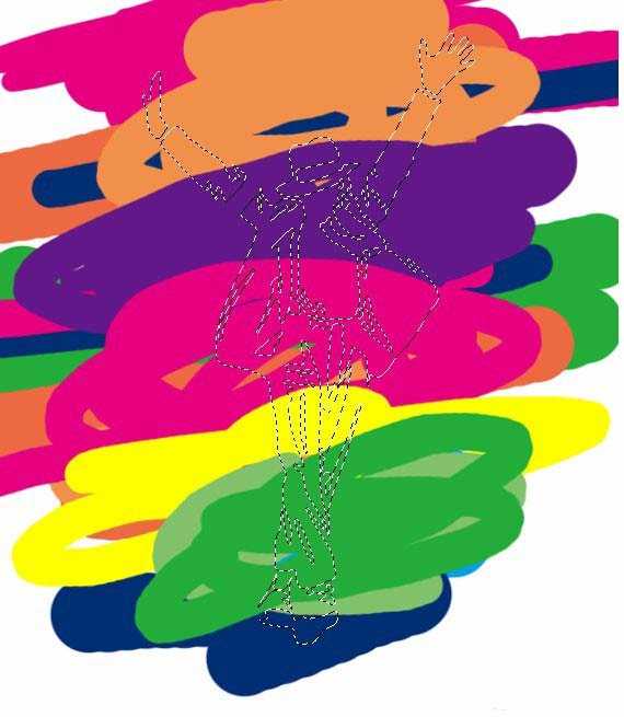 2、新建一个图层,用画笔随手涂些颜色,看个人喜好 ctrl+左键点人物图层,弄出选区,反选去掉不要的。