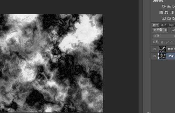 1、新建文件,大小自定,按d键恢复前景色和背景色的默认黑白颜色,按alt+del键将文件填充成黑色的前景色。选择“滤镜”→“渲染”→“云彩”。执行“分层云彩”滤镜,按ctrl+f重复执行,得到如图效果即可。