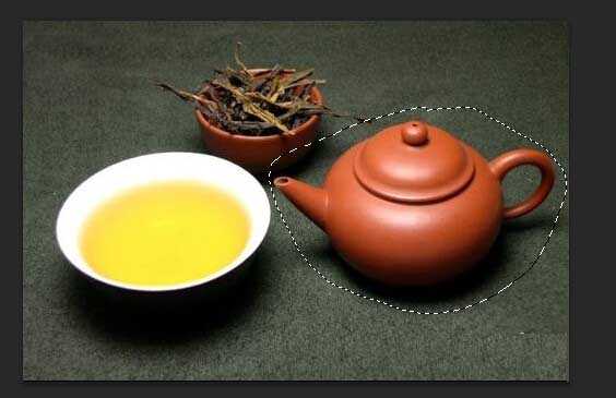 3、套索工具组里面的套索工具,可以用来做任意不规则选区。我们打开一张图片来试一下。我们用圈框选这个茶壶,可以看到对茶壶形成了一个选区。