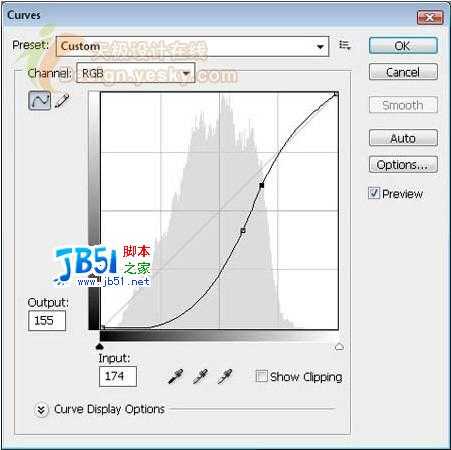 7.按快捷键Ctrl+M打开“曲线”(Curves)对话框,按如图10所示进行调整,为图像增加一些对比度。