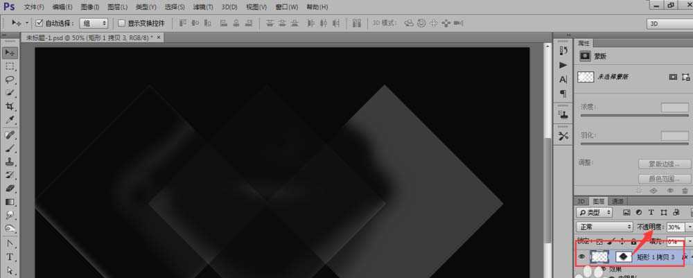 7、复制这个菱形的层三次然后变换(Ctrl + T)命令使拷贝图层一向下移动设置透明度为100%这一层,在图层面板填充改为54%。