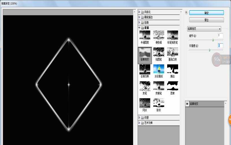 3、执行滤镜-素描-铬黄渐变命令,在弹出的对话框中设置细节为7,平滑度为6,点击确定按钮。