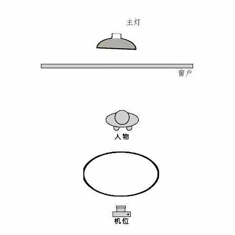 用光详解:窗口外放一只灯,稍稍向下倾斜灯头,产生模拟窗光的自然逆光效果。灯光照亮人物(半身),并在头发、额角、颈背部等处形成高光,要保证过渡清晰自然,可以在人物前面加反光板补光。注意人物姿态,保证头部适当的倾斜角度,同时稍稍压低下巴,从而使大部分面部处于背光中,更显五官柔和优美。
