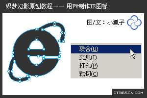 11、全选,选择菜单“修改|组合路径|打孔”,得到IE图标的轮廓路径。