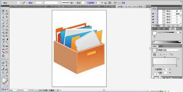 9、最后,我们绘制完成收纳箱中右侧的最后一个橙色的文件夹,完成收纳箱内的所有的元素的绘制。把最右侧的文件夹设置成半透明的效果。