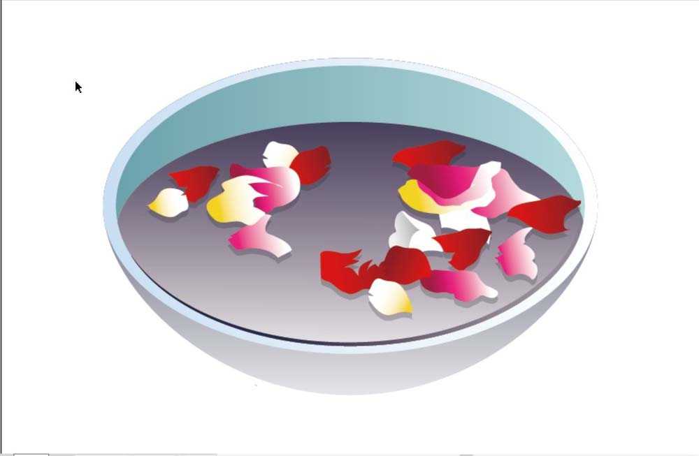 6、再设置一种从白色到黄色的渐变,我们用黄色的渐变填充花瓣,让水盆中的花瓣有更多的变化。完成花瓣水盆设计。