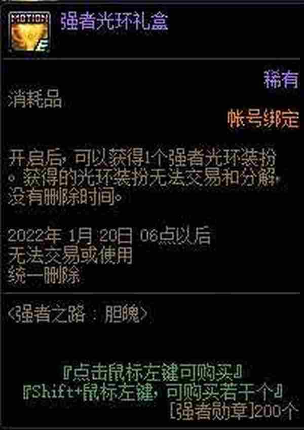 开启后,可以获得100个[强者之证]和20个[强者勋章]。