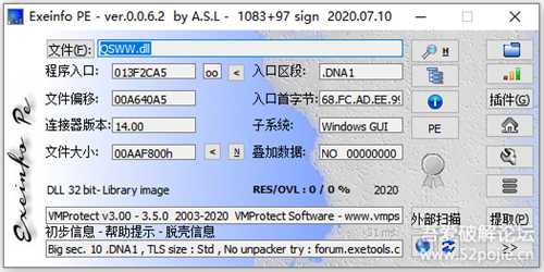 上面原版界面,加的是VMProtect v3.00 - 3.5.0壳