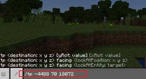 4.接着继续向刚才那样输入指令,这次的指令是输入/tp加刚才的林地府邸的坐标,如图所示。