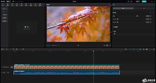 第二步:在左上方导入或者下载素材后,拖动到时间轨,接着在时间轨右上方点击如图所示的录音图标;