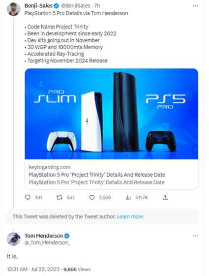 知名舅舅党Tom Henderson爆料称,PS5 Pro将于2024年11月推出,具有加速光线追踪(accelerated ray tracing)功能、8K的性能模式以及4K下更优秀的帧率。