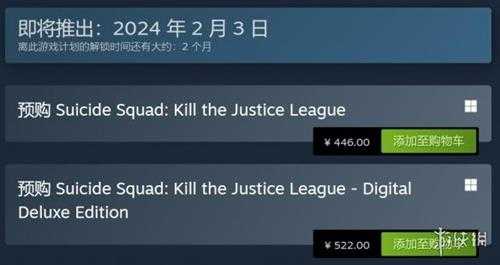 Rocksteady第三人称动作游戏《自杀小队:消灭正义联盟》之前跳票到了2024年2月,现在它正式开启了预购。目前该游戏的标准版在Steam & Epic国区售价为446元,数字豪华版售价522元。