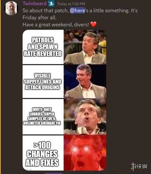 此前Twinbeard曾表示未来将放缓更新速度,并优先更新质量。根据Twinbeard的说法,此次《绝地潜兵2》的一些更改和修复包括添加仅限邀请的私人大厅、对无限手榴弹Bug的修复,以及从难度6开始提高超级样本的可用性等等。