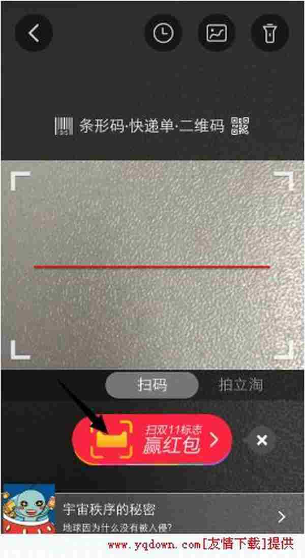 1、首先,你的手机里要下载淘宝或天猫客户端,没有的用户请点击下方链接下载,然后在左上角打开扫一扫并选择扫双11标志赢红包的选项;
