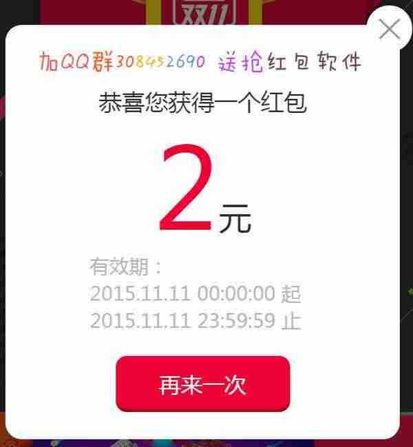 双11红包怎么领?双十一玩法揭秘: 重要事情说三遍:抢双11红包!抢双11红包!抢双11红包!切记!每天都可以参与拆红包哦! 参与步骤: 1、2015天猫双十一抢红包活动地址: 电脑端领取 http://www.800quan.com/11111 (复制链接到浏览器打开) 手机端领取 http://www.800quan.com/sj1111 (复制链接到浏览器打开) (注:这是官方地址 可放心点击,将链接分享给朋友,中奖几率会大大提高!) 2、使用淘宝账号登录; 3、所拆红包是自动到账淘宝账号所对应的支付宝卡券里; 4、手机支付宝打开即可查看红包,如图所示: 5、每天都可以参与拆红包,所得红包11月11日当天购物可以抵扣使用; 天猫2015年11月双十一红包活动进展: 11月1日开始,针对余额宝沉睡用户定向发放5元的红包,限额200万份; 11月4日-11月6日,“红包么么哒”亲晕红包抽奖送红包,每天10点、12点、16点、18点(4个整点)将会出现大波红包; 11月1日-11月7日,“店铺互动赢红包”,只要参与即有获得天猫红包的机会;“狂欢城赢红包”,狂欢城内的飞机会随机撒落一些红包,只要点击即有机会获得天猫红包; 11月7日-11月11日,“星座红包对对碰”根据页面提示拉扯红包,将有机会获得【天猫红包】或【星座红包】一个; 11月11日14点,进行60秒钟的捉猫猫,用鼠标点中“猫猫”即有机会获面额为11元、111元、1111元红包。 以上就是小编呕心力作整理,大家一定记得收藏啊!这可都是钱呐!更多关于2015双十一的活动内容↓↓↓↓