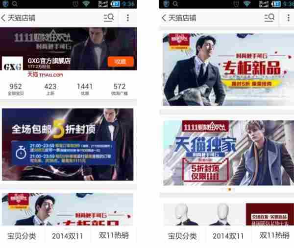 注意前三屏内容的规划,首屏海报促销信息一目了然,导航页面分类清晰,主推产品重点推荐